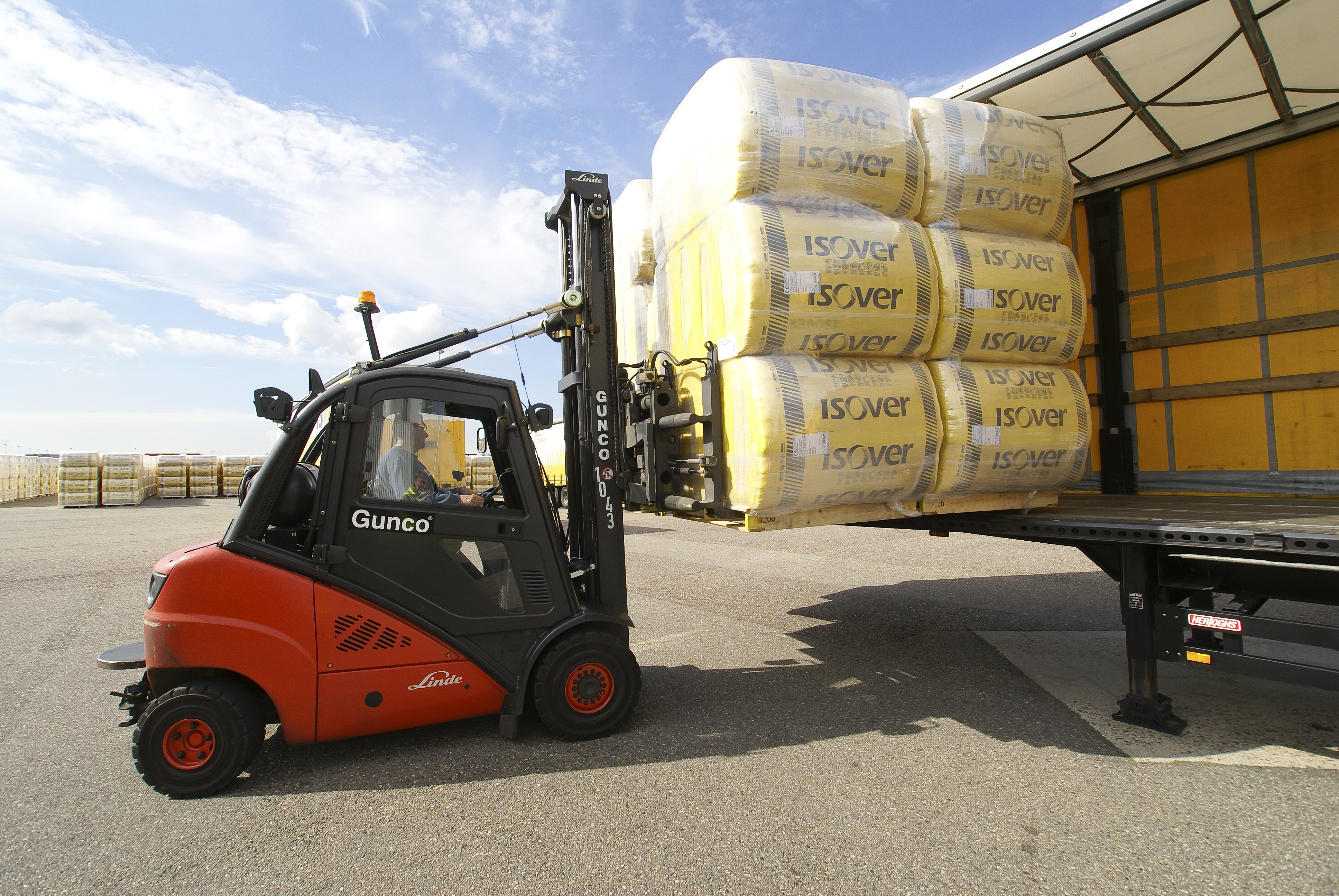 Any smart builder builds insulation into his house. Preferably with Isover products, if the manufacturer from Etten-Leur (Netherlands)) has anything to do with it. Proper insulation increases comfort in the home as well as benefiting the environment, and of course there are significant energy savings. “So in a way it’s not surprising that we were quick to see the advantages of these reach forks”, says Warehouse & Shipping Manager Roy Brown of Saint-Gobain Isover Benelux. “We started with tests in 2006, and we now have three trucks using this system, with plans for more.”
