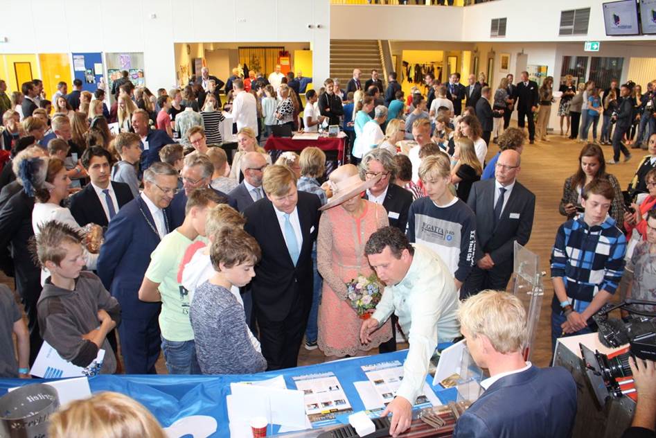 King Willem-Alexander and Queen Máxima have paid a visit to Campus Middelsee in Sint Annaparochie. By means of the Leerwerkplein (apprenticeship employment centre) of the campus, schools and companies from four municipalities collaborate intensively there, in order to connect secondary education pupils with the regional labour market. The King and Queen talked with people involved about the significance of this Leerwerkplein for the liveability and business activity in the region, and visited the ‘Entrepreneurs’ plaza’ where school pupils and potential future employers meet each other.
