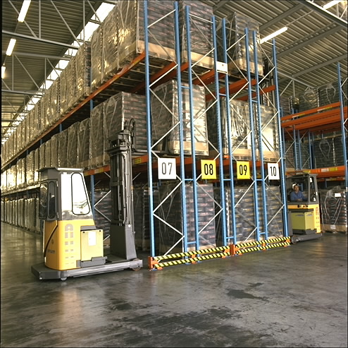 Vertis Communications is a premier provider of targeted advertising and marketing solutions to America’s leading retail and consumer services companies. By providing proprietary research, digital program management systems, data-driven targeting technology, and world-class production expertise, the company is able to produce print advertising and direct marketing programs that deliver superior program performance and better results per program dollar. Vertis employees continually strive to gain and maintain a competitive edge. A prime example of this is a facility enhancement at their Chalfont, Pennsylvania location. This plant was in dire need of improved storage capacity. Narrow aisle forklift trucks were given consideration however tough operational requirements warranted more conventional counterbalanced type forklifts. Mr. Bill Walker, Sr. Account Manager with Eastern Lift Truck, carefully assessed their handling and storage needs. Working together with John Harper, Operations Manager, Bill Walker proposed a plan that would allow them to achieve their goals by increasing the versatility of conventional forklift trucks.